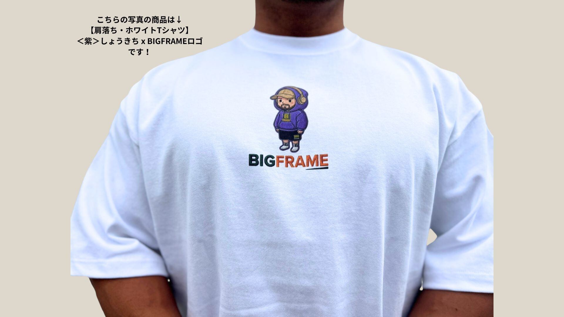 【肩落ち・アシッドカーキーTシャツ】<クリーム色>しょうきち x BIGFRAMEロゴ