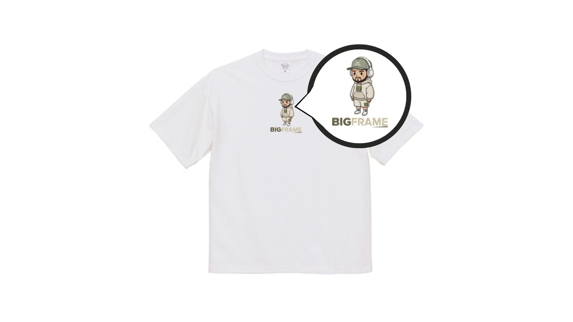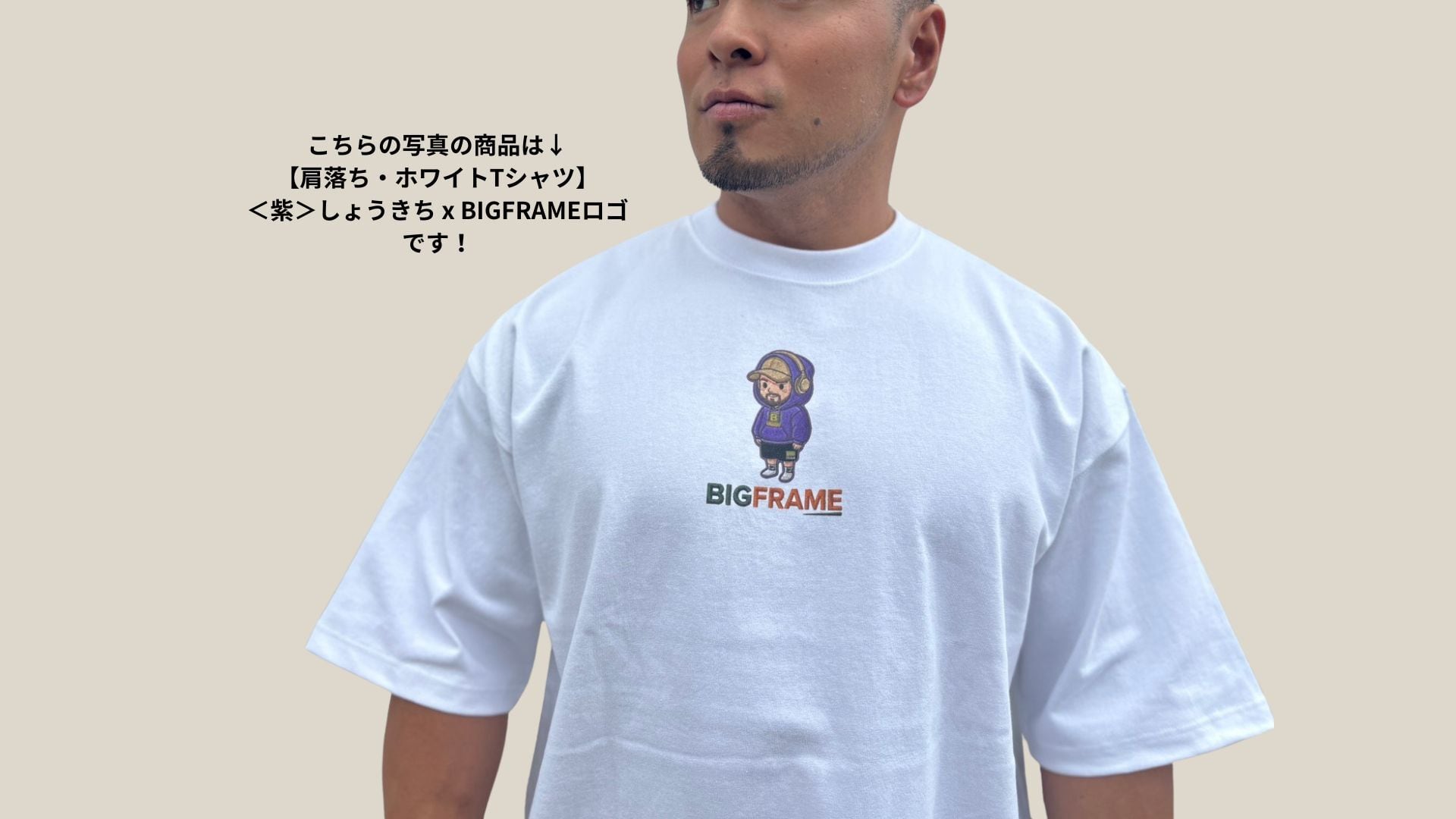 【肩落ち・ホワイトTシャツ】<クリーム>しょうきち x BIGFRAMEロゴ